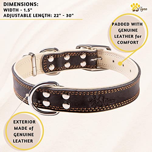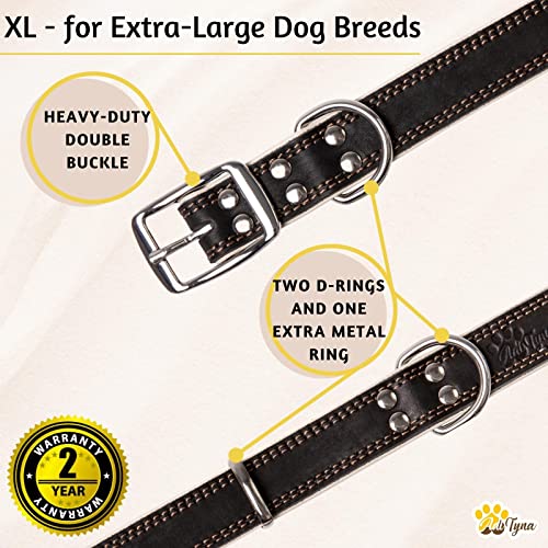 ADITYNA Premium Leather Dog Collar for Extra Large Dogs - Padded with 100% Genuine Leather - Soft and Strong Black XL Dog Collars (Black, XL)