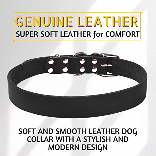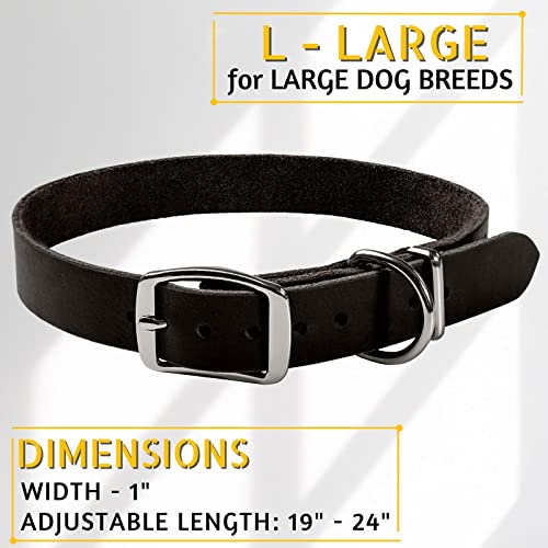ADITYNA Premium Leather Dog Collar for Large Dogs - Classic Style, Soft and Strong, 100% Genuine Leather, (Large, Black)