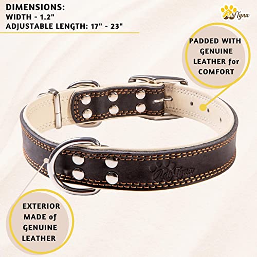 ADITYNA Premium Leather Dog Collar for Large Dogs - Padded with 100% Genuine Leather - Soft and Strong Black Dog Collars (Black, L)Brand: ADITYNA