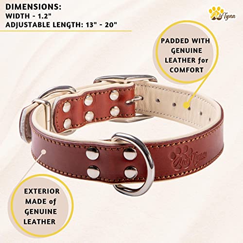 ADITYNA Premium Leather Dog Collar for Medium Dogs - Padded with 100% Genuine Leather - Soft and Strong Dog Collars