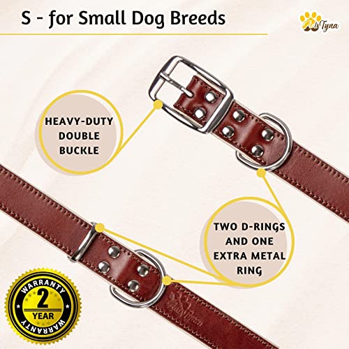 ADITYNA Premium Leather Dog Collar for Small Dogs - Padded with 100% Genuine Leather - Soft and Strong Dog Collars