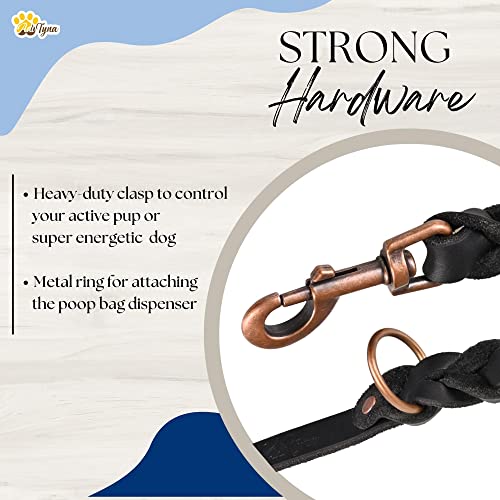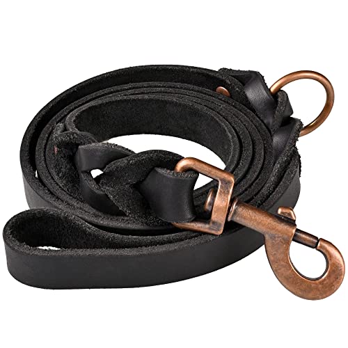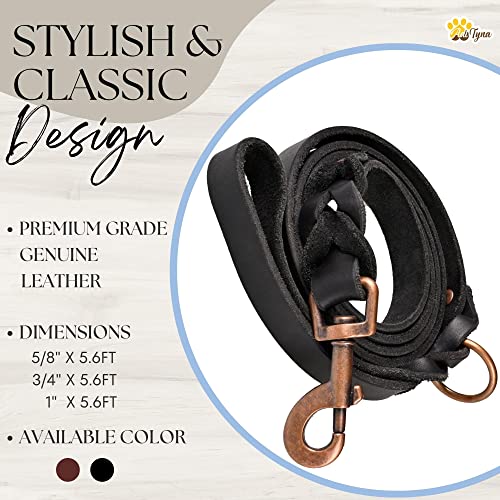 ADITYNA Braided Leather Dog Leash 5.6 ft - Heavy Duty Training Leather Dog Leashes for Small and Medium Dogs (Black, 5.6 ft x 5/8")