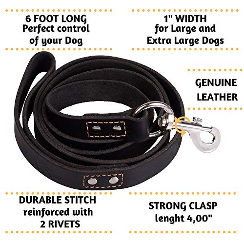 Heavy Duty Leather Dog Leash 6 Foot - Strong and Soft Leather Leash for Extra Large Dogs (XL - 6 ft x 1 inch, Black)
