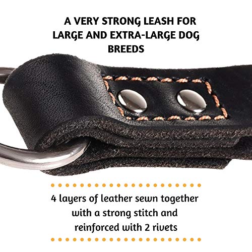 Details: WHILE OTHER DOG LEASHES FOR LARGE DOGS are not made of chew-resistant real leather, smell like chemicals or their clasps break quickly, the ADITYNA Heavy Duty 12” Dog Leash is HANDMADE with 100% ITALIAN imported leather for lifetime durability, ZERO bad smells and comfort for your loved dog. – WE VALUE YOUR PRIORITIES PERFECT SHORT LEASH FOR CROWDS & TRAFFIC – You want to KEEP your dogs safe while walking through crowds or crossing streets, TRAIN them with a comfortable short traffic lead and CALM them down when they get excited. It has been TESTED successfully on over 500 large and medium dogs of all breeds. – IT’S NEVER BEEN EASIER OUR MISSION IS TO KEEP YOUR DOG SAFE & HAPPY – We are a U.S. family-owned business and we designed this short leash for our own big dogs. It’s the WIDEST leather leash on the market (1-inch) to PREVENT burning hands when the dog pulls hard and the one piece of genuine LEATHER is folded in FOUR layers for extra-safety.– UPGRADE TO THE NEXT LEVEL PERFECT FOR ALL DOGS BREEDS & SIZES – The ultra-resistant design, soft texture, and strong locking system allow you to CONTROL even the biggest dog WITHOUT any stress or fear. The 360º heavy-duty clasp has an 800 POUNDS pulling resistance and facilitates the control you need during park walks or training. – LET YOUR DOG CHOOSE