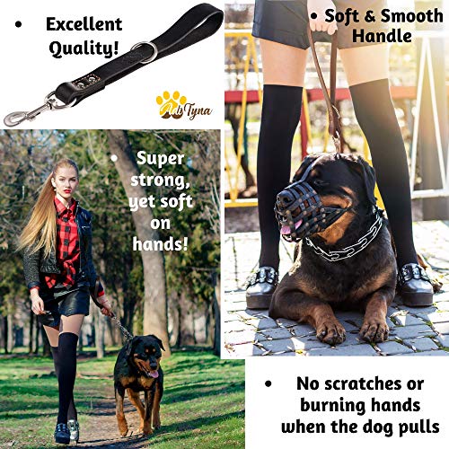 ADITYNA Short Dog Leash 15" Length x 1" Wide - Traffic Leather Dog Leash for Large and Extra-Large Dogs