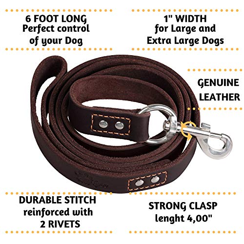 Heavy Duty Leather Dog Leash 6 Foot x 1" - Soft and Strong Dog Leash for Large Dogs and Extra Large Dogs (XL - 6 ft x 1 inch, Brown)
