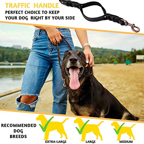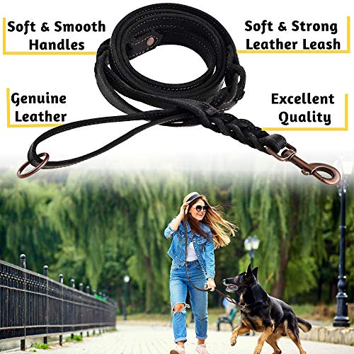 Braided Leather Dog Leash 6 foot x 3/4" - Soft and Strong Dog Leash for Large and Medium Dogs (Double Handle 6 foot x 3/4", Black)