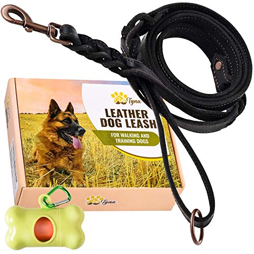Details: Some call it dog training leash, some call it braided leather dog leash, some even call it dog running leash. Call it however you want because one thing’s for certain - Adityna’ Dog Leash will keep you and your dog SAFE for a LONG time! Picture this: You decide to walk your dog one night. He/She is a strong puller and also gets excited when a sound comes on or a squirrel/cat gets in front of you. The next thing you notice is your dog, 20 yards away from you! You’re the only one who knows how bad this can go. Astrong double handle leather leash would’ve been fantastic to avoid this mess! Or maybe you just got tired of painful arms after walking your dog. Scratches on your hand, uncontrolled walks, missed training sessions or even worse - dogs lost because of broken leashes. A Heavy Duty Braided Dog Leash would make your life easier. Here’s why: 2 YEARS WARRANTY: We fully support your buying decision with great quality products and outstanding customer care. RESISTANT: This is a 6 foot long dog leash and ¾ inch wide. It has been treated and painted to provide real support for you.