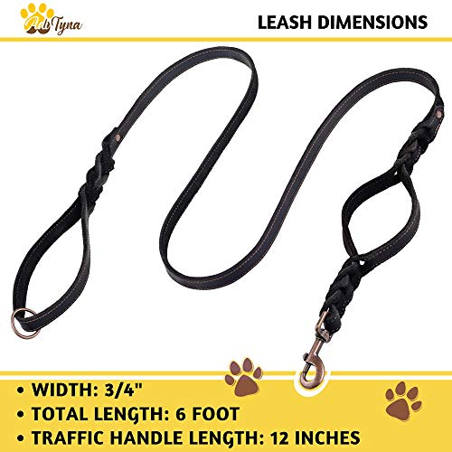Braided Leather Dog Leash 6 foot x 3/4" - Soft and Strong Dog Leash for Large and Medium Dogs (Double Handle 6 foot x 3/4", Black)Brand: ADITYNA