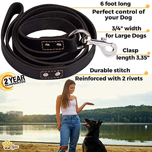 Leather Dog Leash 6 Foot x 3/4 inch - Strong and Soft Leather Leash for Large and Medium Dogs - Dog Training Leash (Black)Brand: ADITYNA