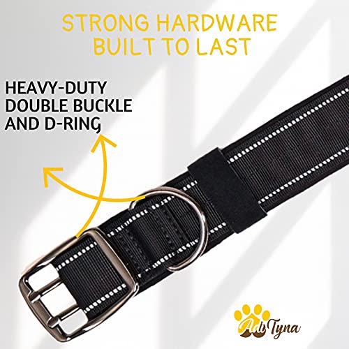 ADITYNA Tactical Dog Collar with Handle for Training and Walking, Heavy-Duty and Adjustable, Extra Wide with Reflective Stitching