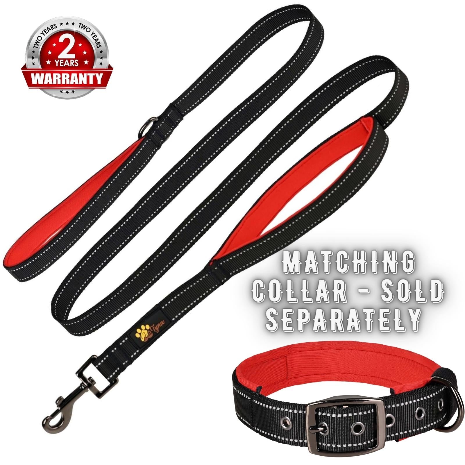 Comfortable Dog Leash for Small, Medium, Large Dog Breeds - Double Handle Padded with Ultra Soft NeopreneDog Leash 6ftx3/4"_Black/Red