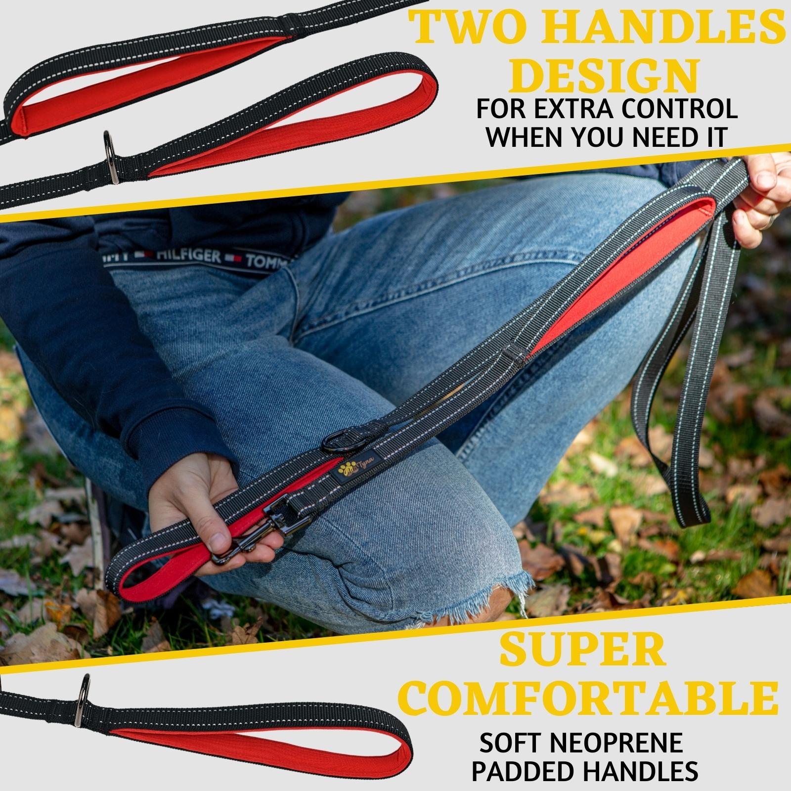 Comfortable Dog Leash for Small, Medium, Large Dog Breeds - Double Handle Padded with Ultra Soft Neoprene