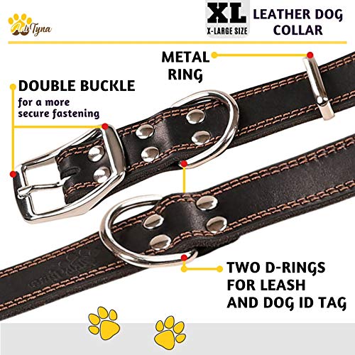 Leather Dog Collar for Extra-Large Dogs - Heavy Duty Wide Dog Collars (XL: 1,5" Width / 22"- 30" Length, Black)Brand: ADITYNA