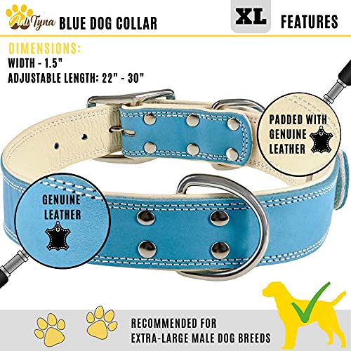 ADITYNA Padded Leather Dog Collar – Boy Dog Collars – Blue Dog Collars for Extra-Large Male Dogs