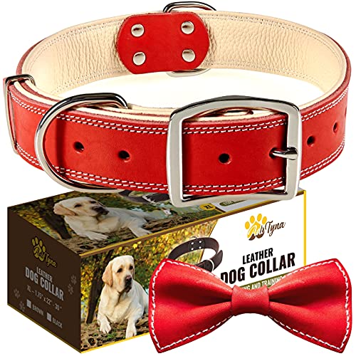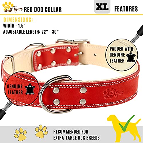 ADITYNA Padded Leather Dog Collar – Soft and Strong Red Dog Collars – Heavy Duty Dog Collars for Extra-Large Dogs