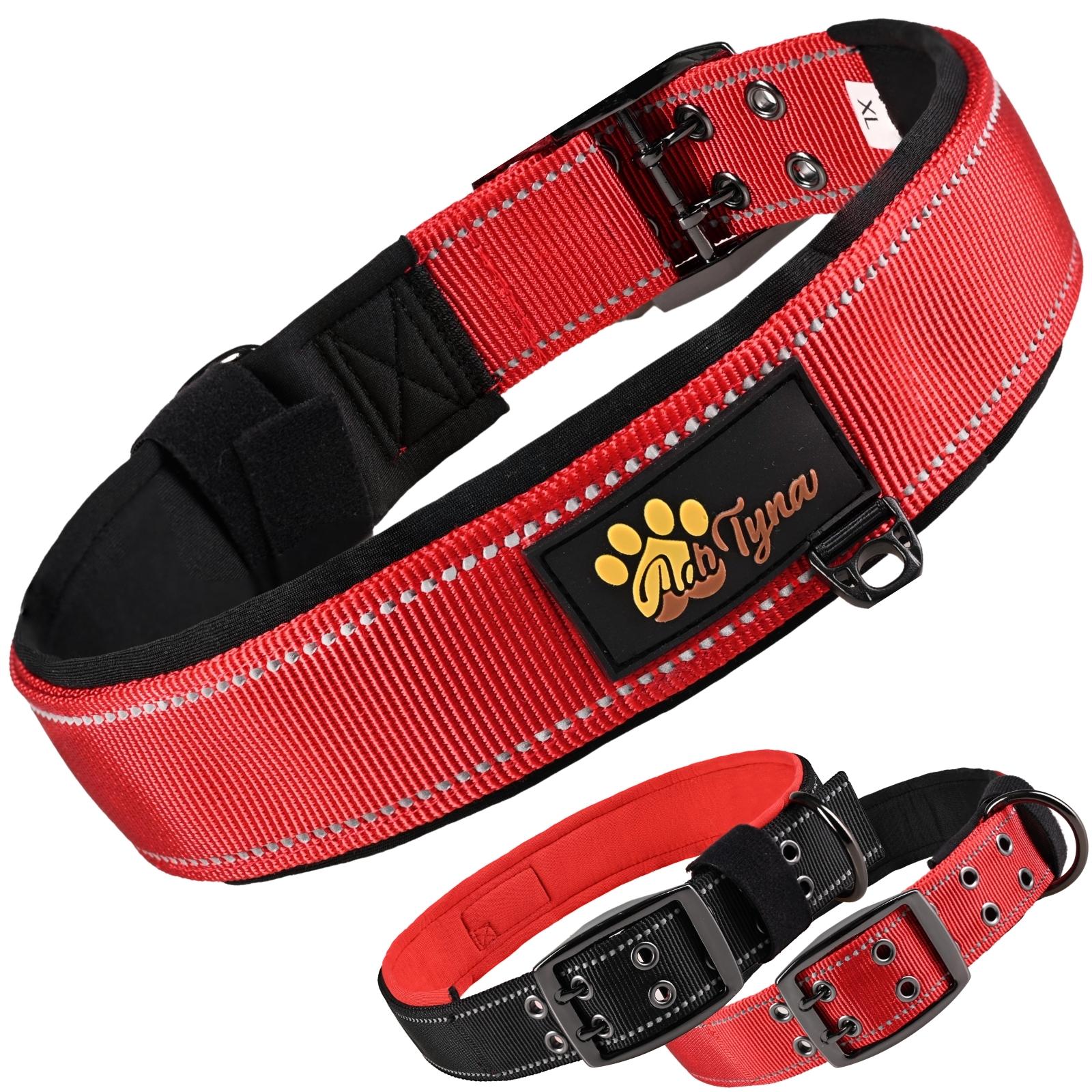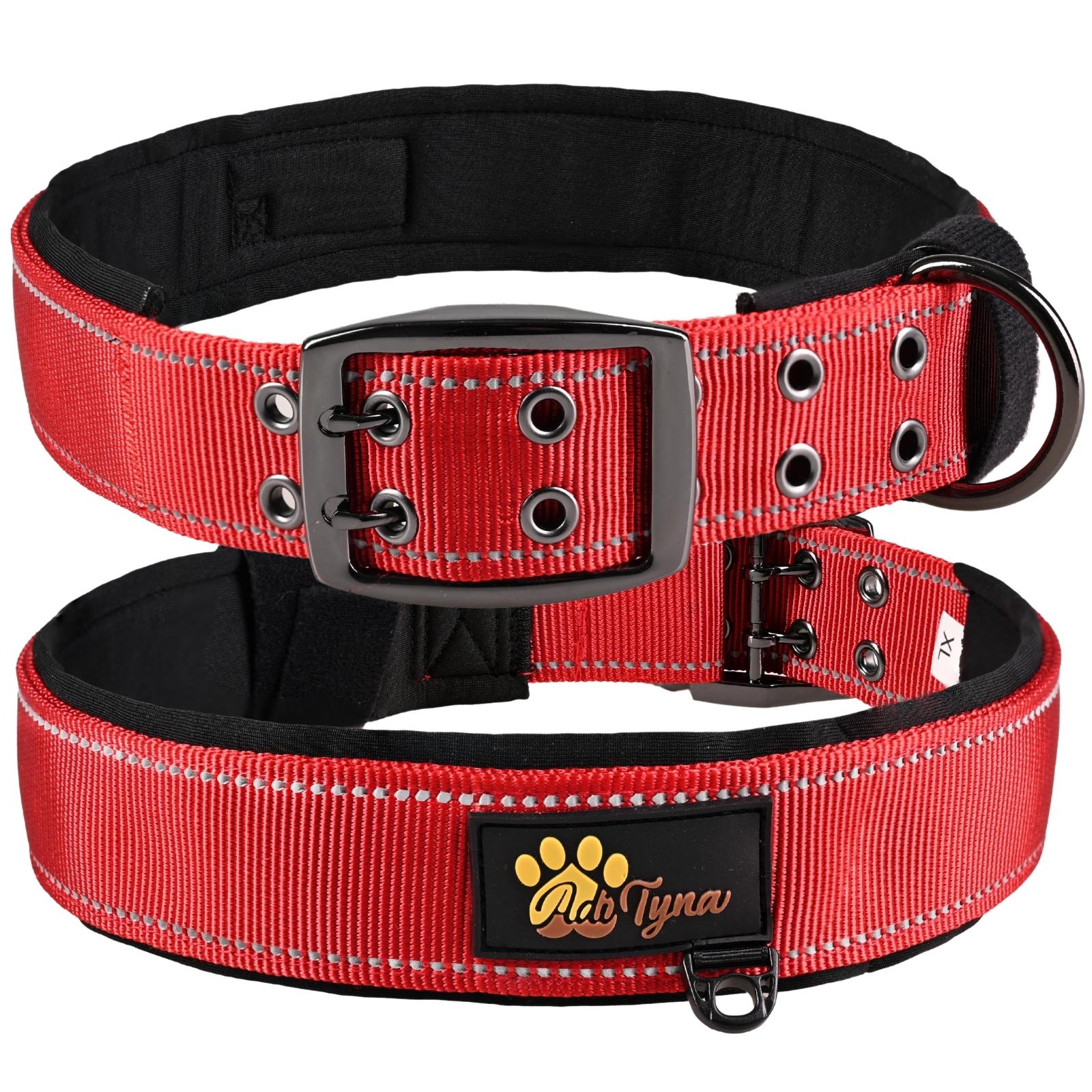 Dog Collar for Extra Large Dogs - Heavy Duty Red Dog Collar for Big Breeds - Reflective Threads and Soft Padding