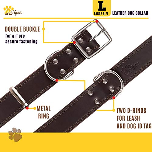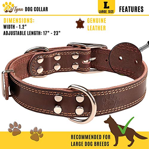 ADITYNA Leather Dog Collar for Large Dogs - Heavy Duty Wide Dog Collars (L: 1,2" Width / 17"- 23" Length, Brown)