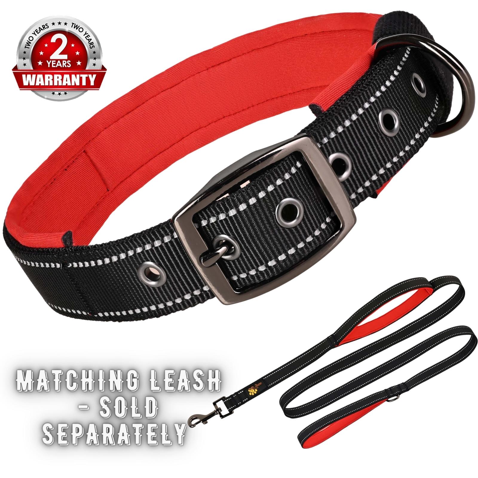 Dog Collars for Medium Dogs - Heavy Duty Black Dog Collar for Girls and Boys - Reflective Threads and Soft PaddingDog Collar-Neoprene Padded-Black/Red-M