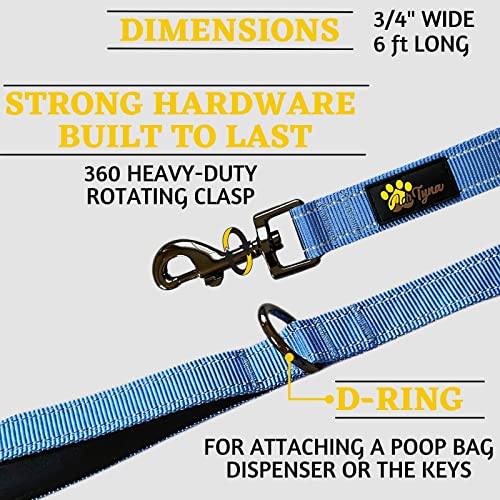 Adityna - Comfortable Dog Leash for Small, Medium, Large Dog Breeds - Double Handle Padded with Ultra Soft Neoprene