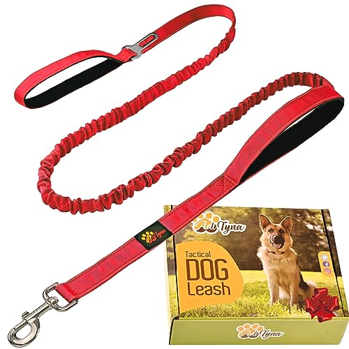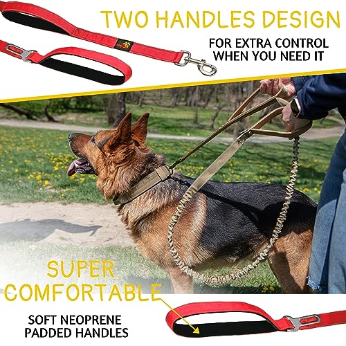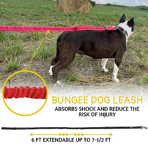 Heavy Duty Bungee Dog Leash 6 ft - 7.5 ft for Large and Medium Dogs | No Pull, Reflective, Tactical Dog Leash | Soft Neoprene Padded Double Handle (Red)