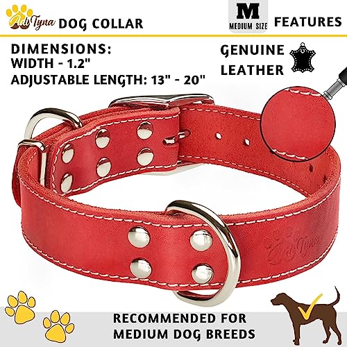 ADITYNA Heavy Duty Leather Dog Collar - Soft and Strong Red Dog Collar for Medium Dogs (Medium: Fit 13" - 20" Neck, Red)
