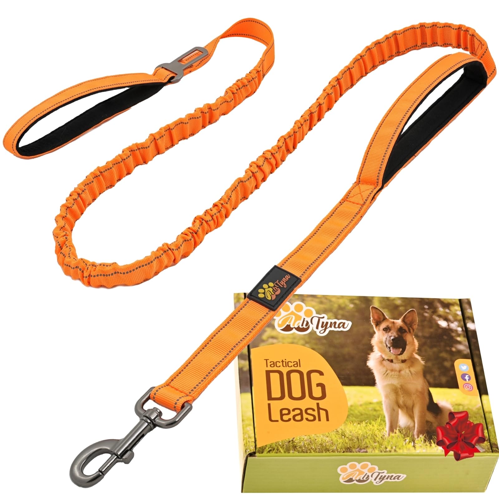ADITYNA Tactical Bungee Dog Leash 6ft-7.5ft - Shock Absorbing Lead with 2 Padded Handles, Metal Clasp, Car Seatbelt - Heavy Duty No Pull for Medium, Large & XL BreedsBrand: ADITYNA