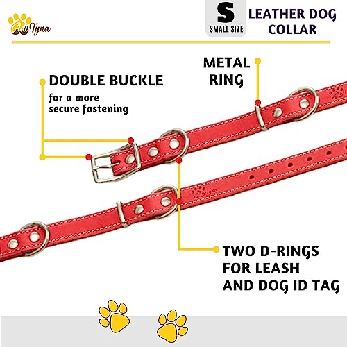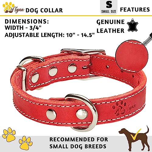 Heavy Duty Red Leather Dog Collar for Small Dogs- Soft and Strong Dog Collar for Puppy or Small Dogs (Small: Fit 10" - 14.5" Neck, Red)Brand: ADITYNA