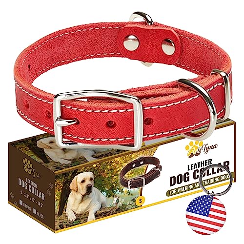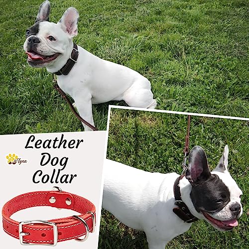 Heavy Duty Red Leather Dog Collar for Small Dogs- Soft and Strong Dog Collar for Puppy or Small Dogs (Small: Fit 10" - 14.5" Neck, Red)